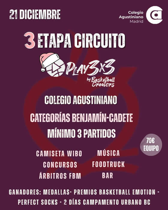 Basketball Creators organiza el Torneo 3×3 Play3x3 Cantera by Basketball Creators el 21 de diciembre, con 6 categorías, desde benjamín hasta cadete, tanto femenino como masculino.